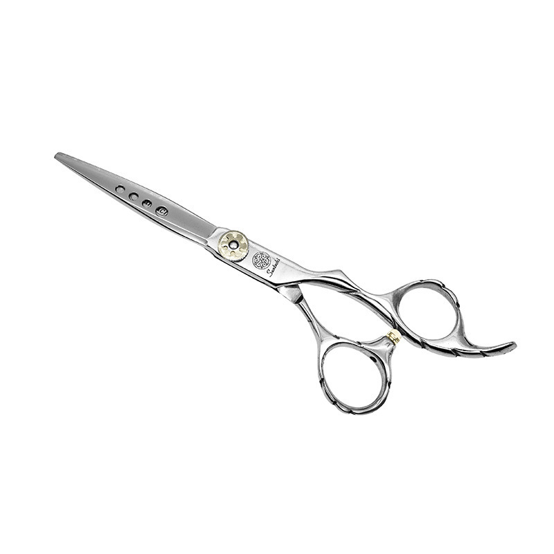 Виды срезов и техника: Очень удобная и легкая и оригинальная модель с универсальной эргономикой ручки. Одно из лезвий имеет 4 отверстия выполняющие как дизайнерское решение, а так же и облегчают вес полотна, что ощущается во время работы. Модель позволяет выполнять все основные техники стрижки: тушевка, работа с краевой зоной, пойнтинг, точечный срез, слайсинг, техника выкройки. Узкие и тоненькие кончики лезвий незаменимы для точной и детальной доработки стрижки. Подходит как для мужских техник, так и для женских.