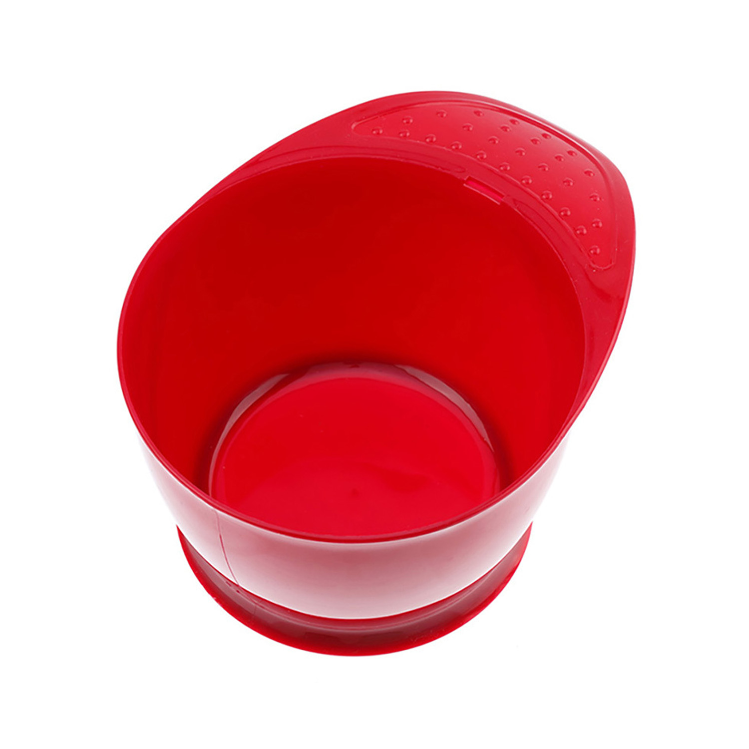 Полный размер чаши для краски Dewal T-21Red - 600 мл, но поскольку чаши никто не заполняет на 100% краской для волос, отметки стоят до 320мл. В такой чаше удобно размешать краску не только кисточкой и венчиком, но и миксером! Все продумано до мелочей: прорезиненное дно для хорошей устойчивости, удобная большая ручка и специальная выемка для кисточки.