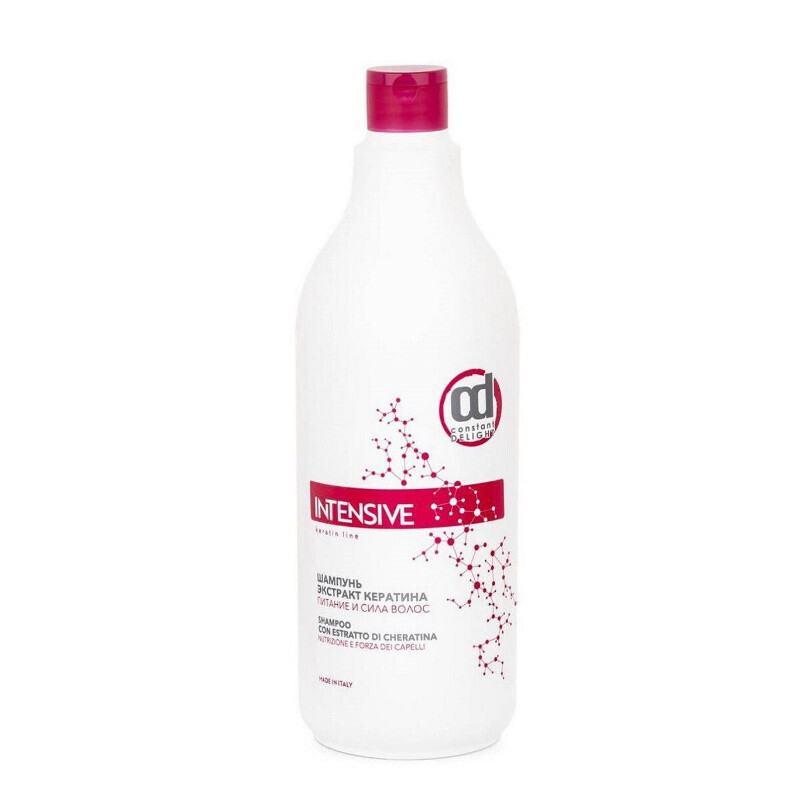 Шампунь с экстрактом кератина "Питание и сила волос" Constant Delight Intensive для мягкого очищения и сбалансированного питания ослабленных, тонких и поврежденных волос. Попадая на пряди, он превращается в нежную пену, которая деликатно смывает все загрязнения, успокаивает сухую и склонную к раздражениям кожу, делает волосы послушными, пышными и сильными. Главный ухаживающий компонент шампуня – кератин. Этот натуральный белок обладает по-настоящему волшебными качествами. Он вплетается в структуру каждого волоска, реконструирует травмированные участки, уплотняет и разглаживает изнутри. Благодаря его способности накапливаться в волосах, он утолщает их по всей длине, делает визуально гуще и объемнее, дарит эластичность, шелковистость и насыщенный глянцевый блеск. Шампунь Constant Delight Intensive Shampoo Con Estratto Di Cheratina обладает легкими кондиционирующими качествами. Он не перегружает тонкие волосы, при этом прекрасно дисциплинирует, распутывает и смягчает.