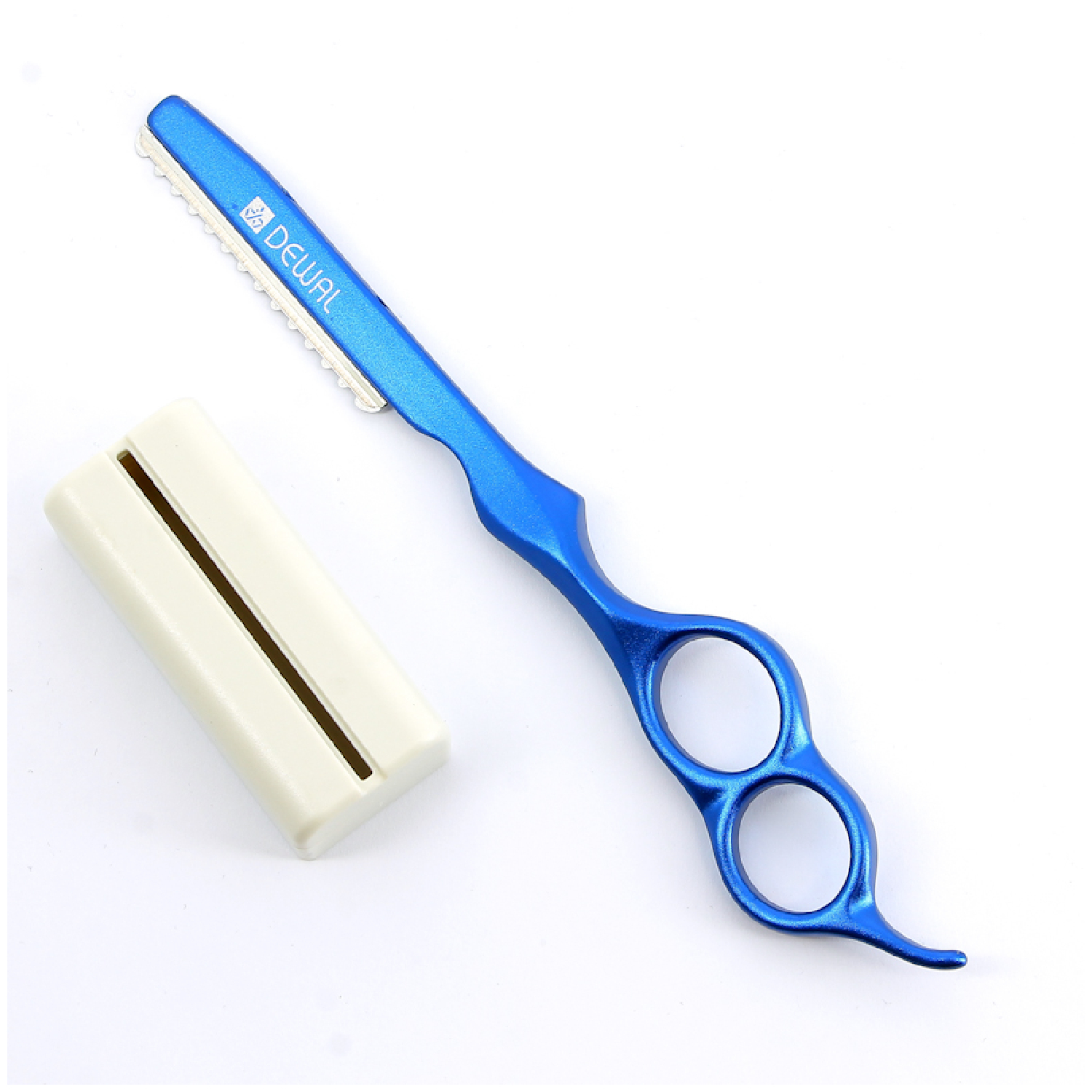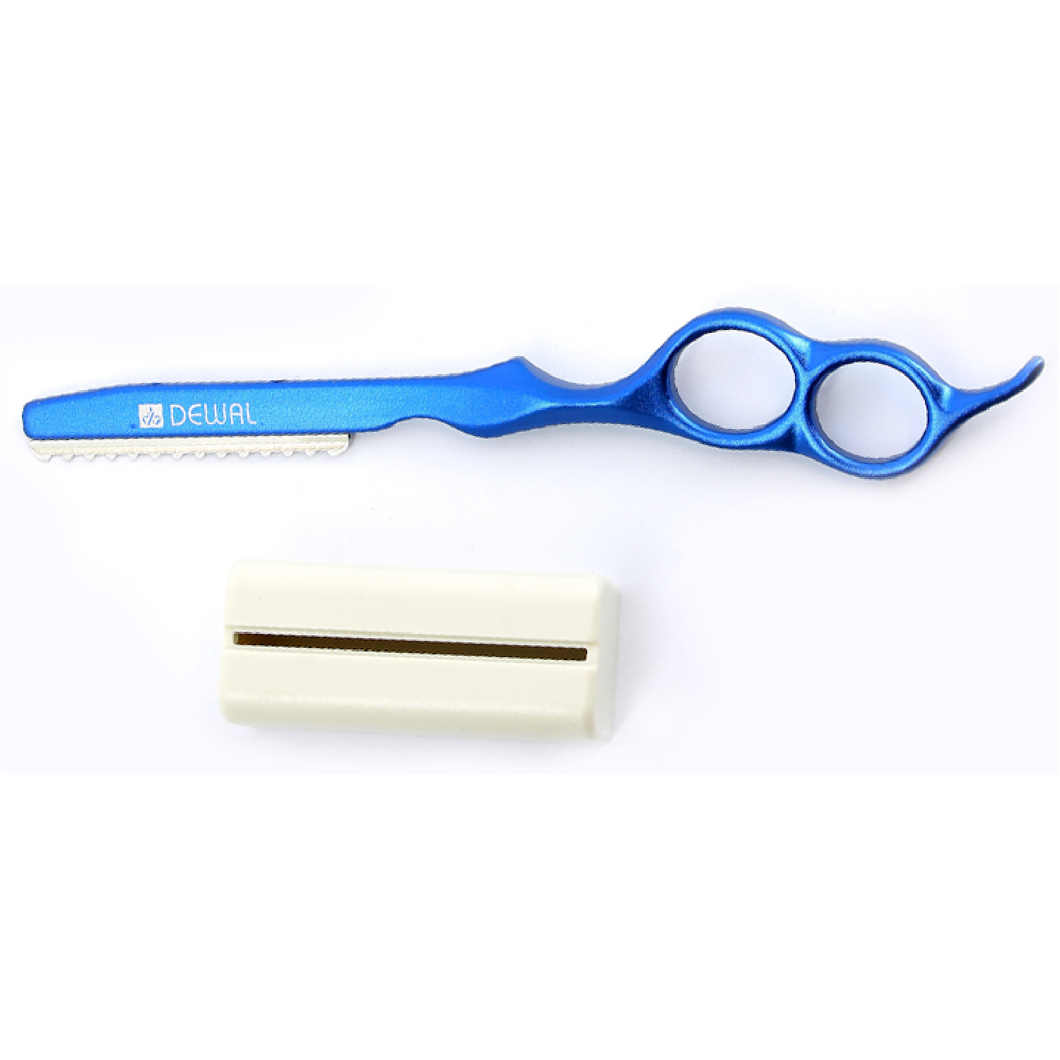 Профессиональная филировочная бритва Dewal с литой эргономичной ручкой и упором для пальцев. В комплекте станок для снятия лезвия.