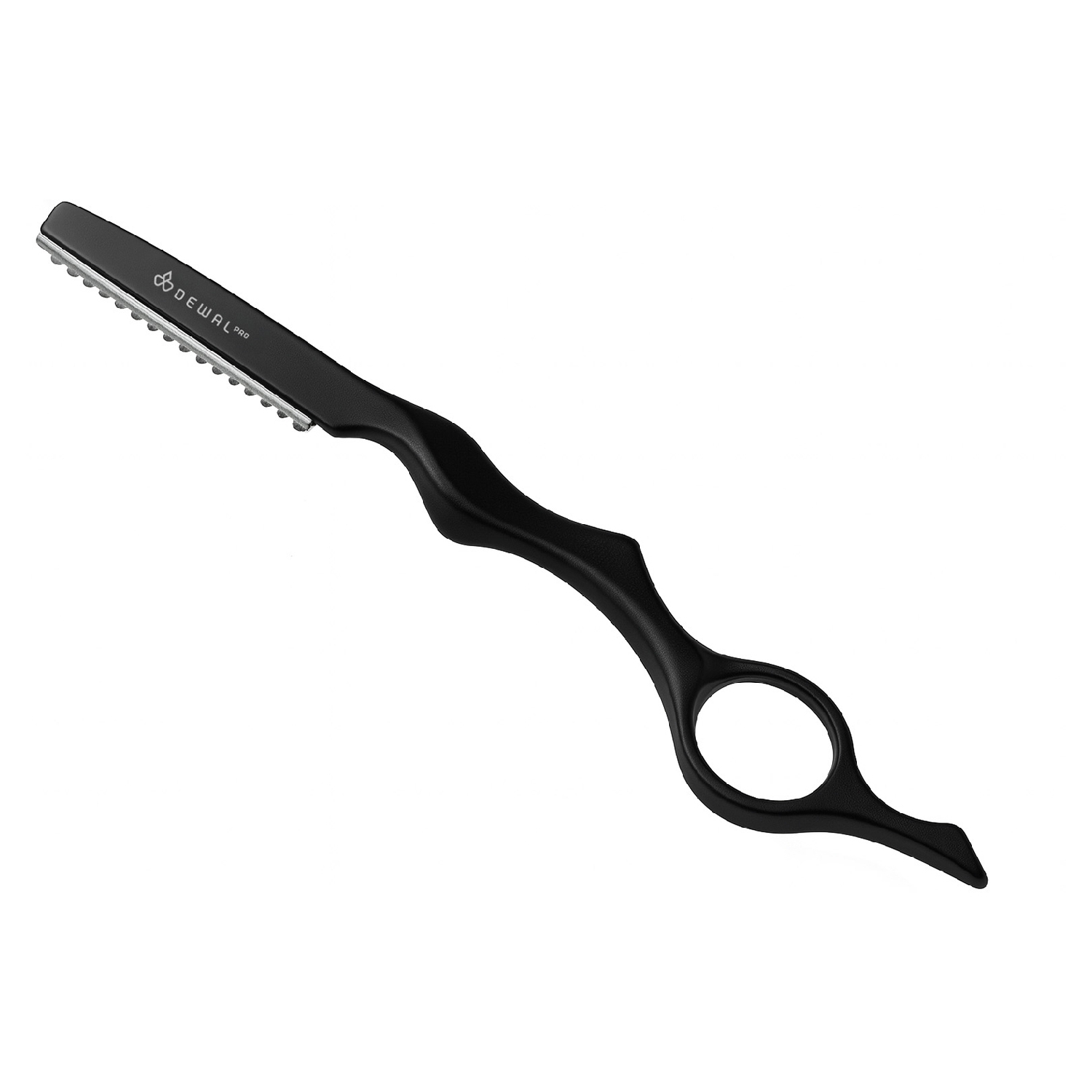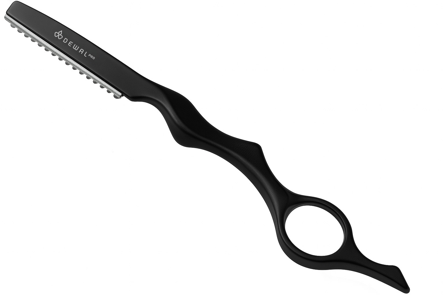 Профессиональная филировочная бритва Dewal с литой эргономичной ручкой и упором для пальцев. Имеет съемное прямое лезвие и станок для снятия лезвия. Безопасна, надежна и долговечна.
