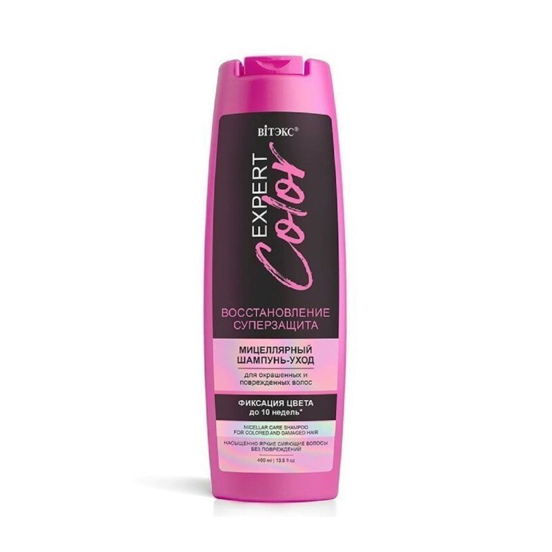 Шампунь-уход Витекс Expert Color создан по специально разработанной экспертной формуле, чтобы подарить профессиональное восстановление и суперзащиту окрашенным, мелированным, тонированным и поврежденным волосами. Современная мицеллярная технология очень мягко и при этом тщательно очищает волосы и кожу головы, не пересушивая и не вызывая раздражения.