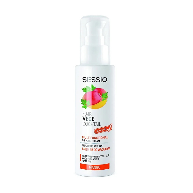 Многофункциональный BB-крем для волос Sessio Hair Vege Cocktail - инновационный продукт с немедленным эффектом, для использования на сухих или влажных волосах без ополаскивания. Содержит 94% ингредиентов натурального происхождения. Легкая консистенция хорошо действует на грубые, высокопористые, тусклые волосы и волосы, ослабленные парикмахерскими процедурами. Защищает от УФ-излучения, разглаживает и укладывает, нежно сияет, не утяжеляя волосы. Укрепляющая петрушка, питательное масло манго и авокадо придают волосам шелковистую гладкость и мягкость.