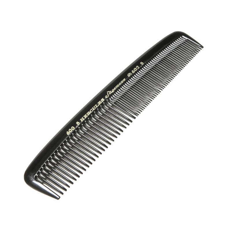 Парикмахерская расческа Hercules 600-5 серии Premium крупная комбинированная используется при расчёсывании волос, когда не требуется большой точности распределения волос. Эти превосходные расчёски глубокого черного цвета ручной работы изготовлены из эбонита (вулканизированного натурального каучука). Они вырезаны и отполированы вручную. Если на расчёске имеется тиснение из золотой фольги «Hercules Sägemann», то она лучшая в мире, лучшая в своем роде и отвечает самым высоким профессиональным требованиям.