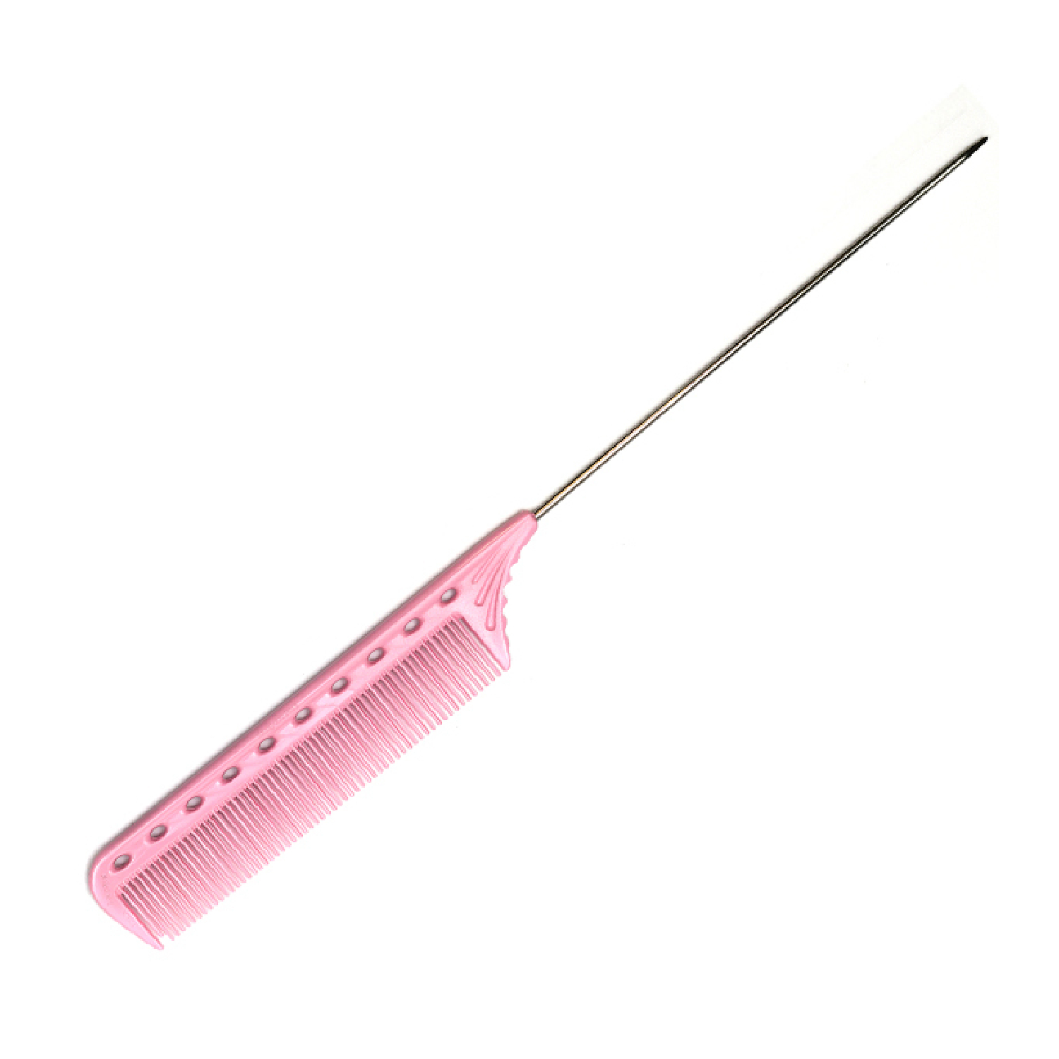 Парикмахерская расческа Y.S.Park YS-122 с удлиненным хвостиком спроектирована специально для мастеров, использующих широкие листы фольги. Данная расческа также экономит время при работе с перманентной завивкой. Она изготовлена из высокотехнологичного пластика, применяемого в авиакосмической промышленности, что делает эти расчёски очень прочными, гибкими, упругими, невосприимчивыми к химическим веществам, применяемым в парикмахерских, и термостойкими до +220°С. Укороченный второй зубец предназначен для быстрого и точного отделения прядей. Интервал между центрами отверстий на обушке расчёски составляет 1 см, что позволяет точно измерять длину.