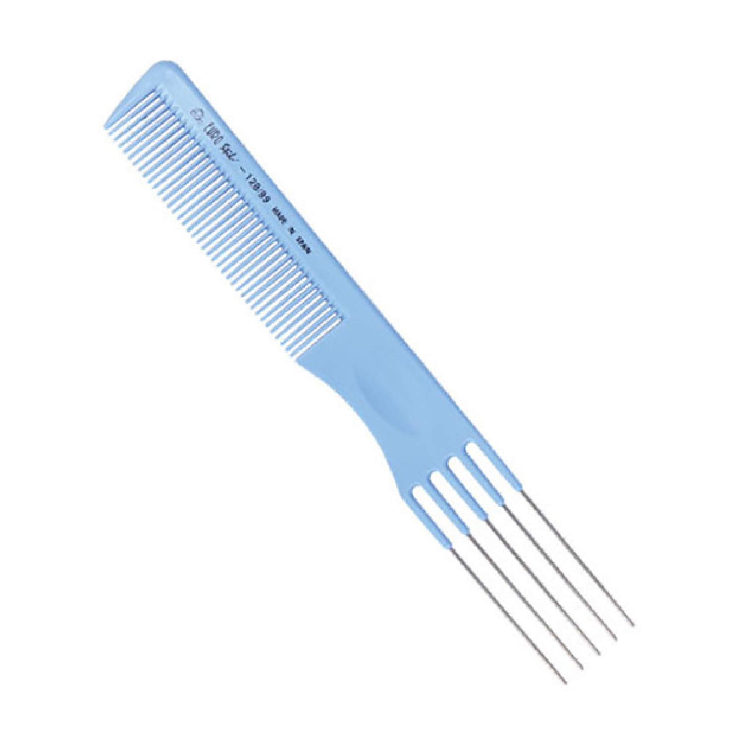 Профессиональная расчёска-вилка Eurostil 00128 с пятью металлическими хвостиками и зубчиками одной длины, используется для сложных начёсов и моделирования укладок.