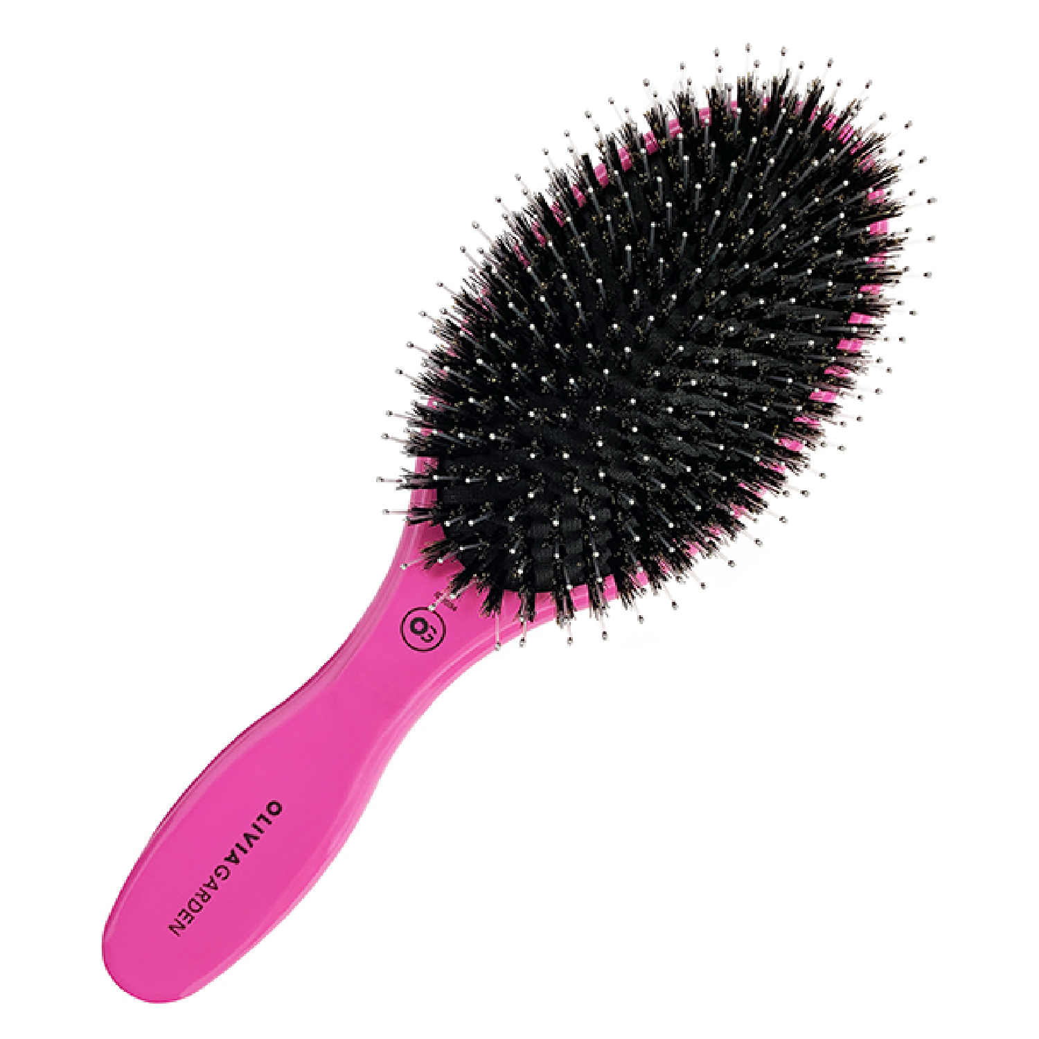 Щётка Combo Supreme с керамической поверхностью, обогащённой отрицательно заряженными ионами, с натуральной щетиной дикого кабана и штифтами из термостойкого нейлона. Турмалиновое напыление способствует снятию статического электричества с волос. Как следствие, чешуйки, покрывающие волосяной стержень, более плотно прилегают друг к другу. Волосы сохраняют естественную влагу. Они выглядят более здоровыми, приобретают красивый блеск и легче поддаются укладке. Расческа с функцией ионизации обеспечивает волосам наилучшую защиту. Это особенно актуально для тех, кто часто использует фен, утюжок или плойку. Резиновая подушечка легко прогибается для лучшего результата при расчёсывании и укладке волос.