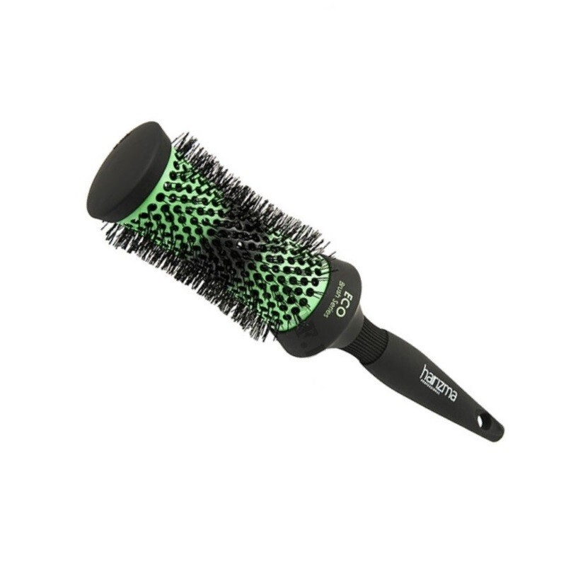 Термобрашинг Harizma ECO brush с щетиной из специального термостойкого нейлона, имеет волнистую форму с аккуратно обрезанными кончиками. В совокупности с керамико-турмалиновой рабочей поверхностью брашинга это обеспечивает мягкую и бережную укладку волос. Равномерное распределение тепла по керамической поверхности и отрицательные ионы, излучаемые турмалином, оказывают положительное действие на волосы: они становятся более мягкими и блестящими, кутикула волоса увлажняется, причёска становится более "послушной".