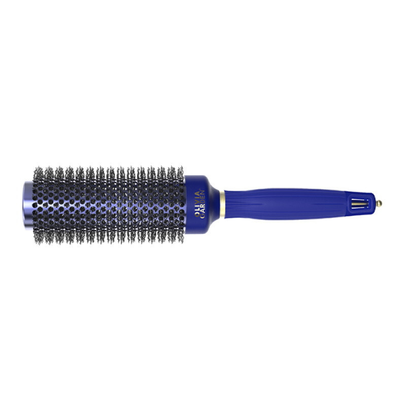 Высококачественный термобрашинг Nanothermic Speed XL Royalty, d 44 мм. Щетина брашинга, изготовленная из специального термостойкого нейлона, имеет волнистую форму и закруглённые кончики. В совокупности с керамико-турмалиновой рабочей поверхностью брашинга, это обеспечивает мягкую и бережную укладку волос. Щетка Olivia Garden имеет эргономичную ручку и оснащена секционным выдвижным наконечником. С его помощью легко выделить отдельные пряди и сделать идеальный пробор.