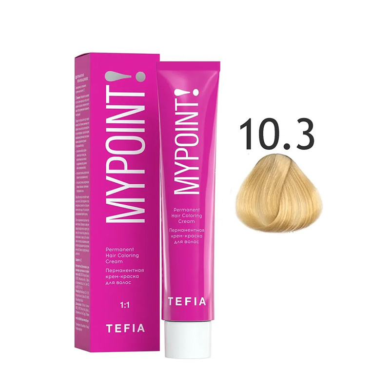 Перманентная крем-краска для волос Tefia Mypoint, цвет 10.3 экстра светлый блондин золотистый, 60 мл.