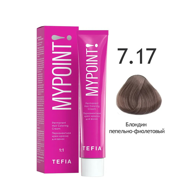 Перманентная крем-краска для волос Tefia Mypoint, цвет 7.17 блондин пепельно-фиолетовый, 60 мл.