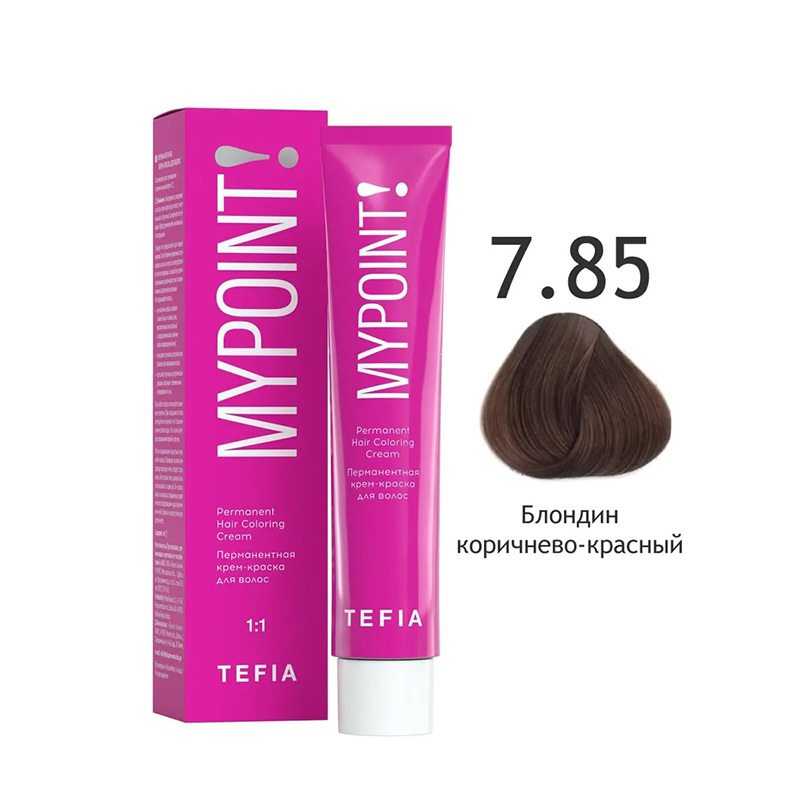 Перманентная крем-краска для волос Tefia Mypoint, цвет 7.85 блондин коричнево-красный, 60 мл.