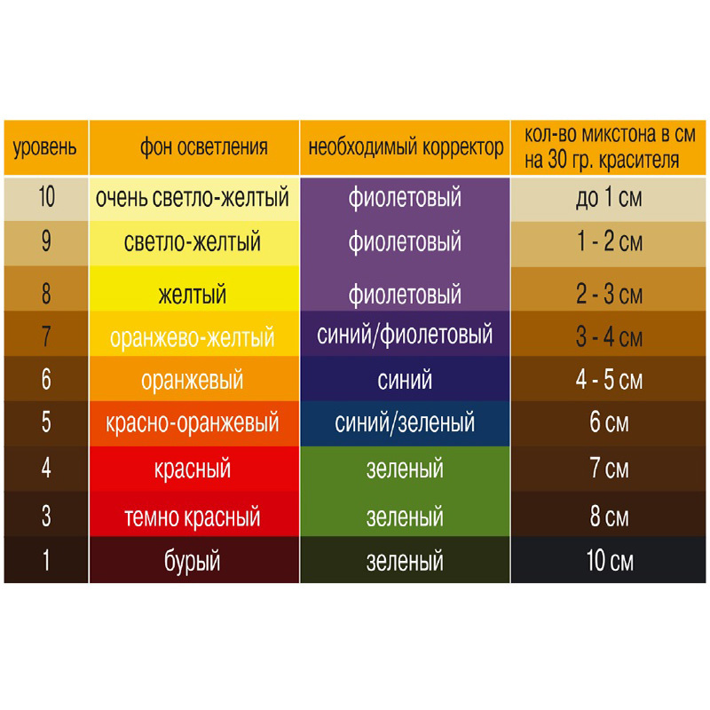 - Для нейтрализации фона осветления корректор рассчитывается по правилу 10. В этом случае окисляющая эмульсия на долю корректора не рассчитывается.