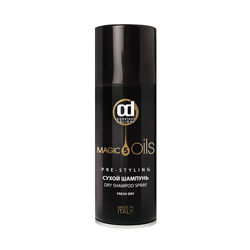 Сухой шампунь 5 Magic Oils Constant Delight очищает волосы без использования воды, продлевает жизнь укладке, помогает создать и сохранить дополнительный объём в прикорневой зоне, освежает причёску между процедурами мытья волос, при создании причёсок или укладок сухой шампунь поможет сохранить результат на длительный срок. Экстракт зерен риса и другие абсорбирующие вещества, входящие в состав шампуня, бережно очищают волосы и кожу головы. Экстракт эхинацеи нормализует работу сальных желез. Экстракт масла чайного дерева оказывает успокаивающее и антисептическое действие.
