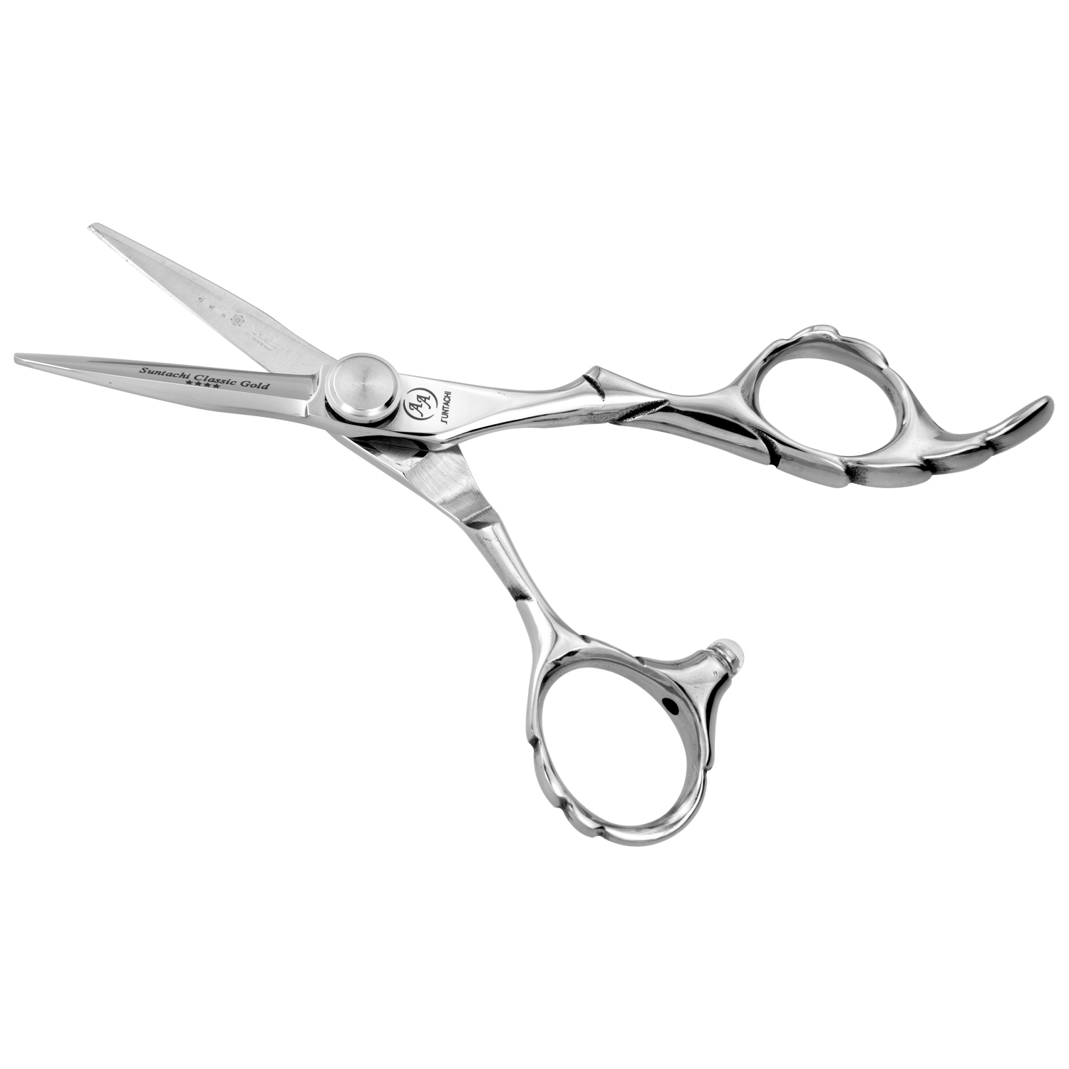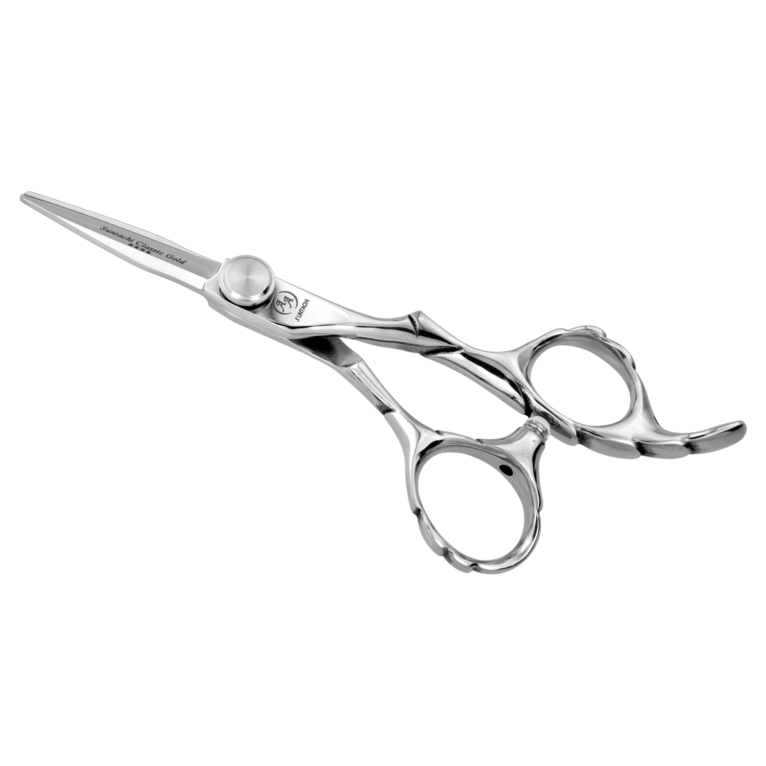 Ручка: Модель имеет эксклюзивную ручку с уникальной эргономикой и кольцами в 2-х различных плоскостях. Кольца ручек имеют анатомическую форму и изгиб для комфортного размещения в руке мастера. Ножницы с этой ручкой идеально ложатся в руку и являются настоящим продолжением кисти мастера. Ножницы можно ставить под любым углом и производить срезы, кисть руки и предплечье при этом не напрягаются.