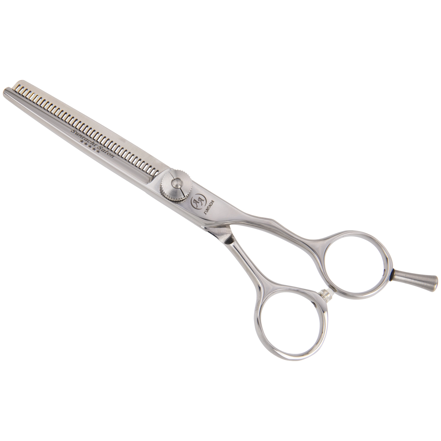 Виды срезов и техника: Особо острая кромка лезвия в комбинации с 40-ка зубцами классической прямой формы с просечкой позволяют выполнять: тушевку, работу с глубокими слоями, снятие объёма, работу с массой, создание формы. Подходят для мужских и женских стрижек как мастерам с опытом, так и начинающим.